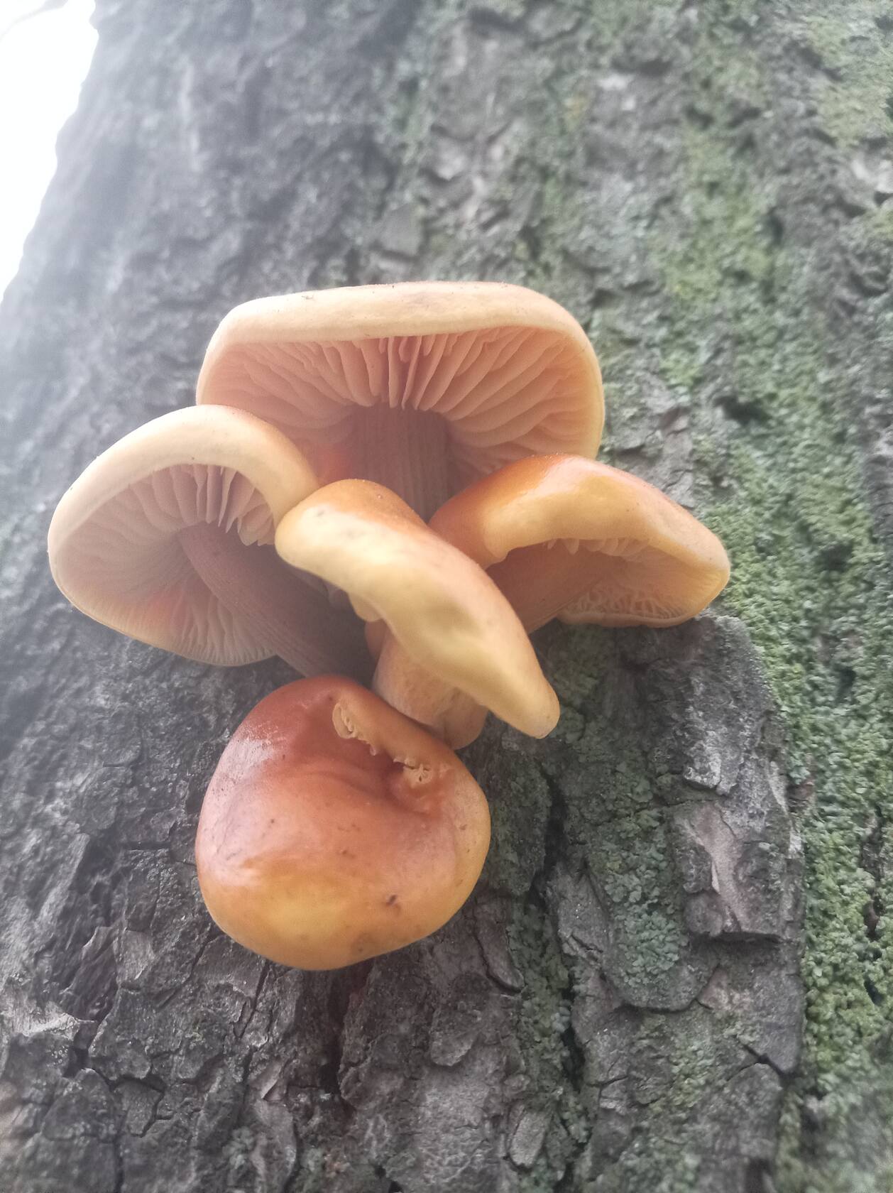 Вешенка оранжевая. Один сросток уже волнуется, другой бодрый, во всей прелести.
