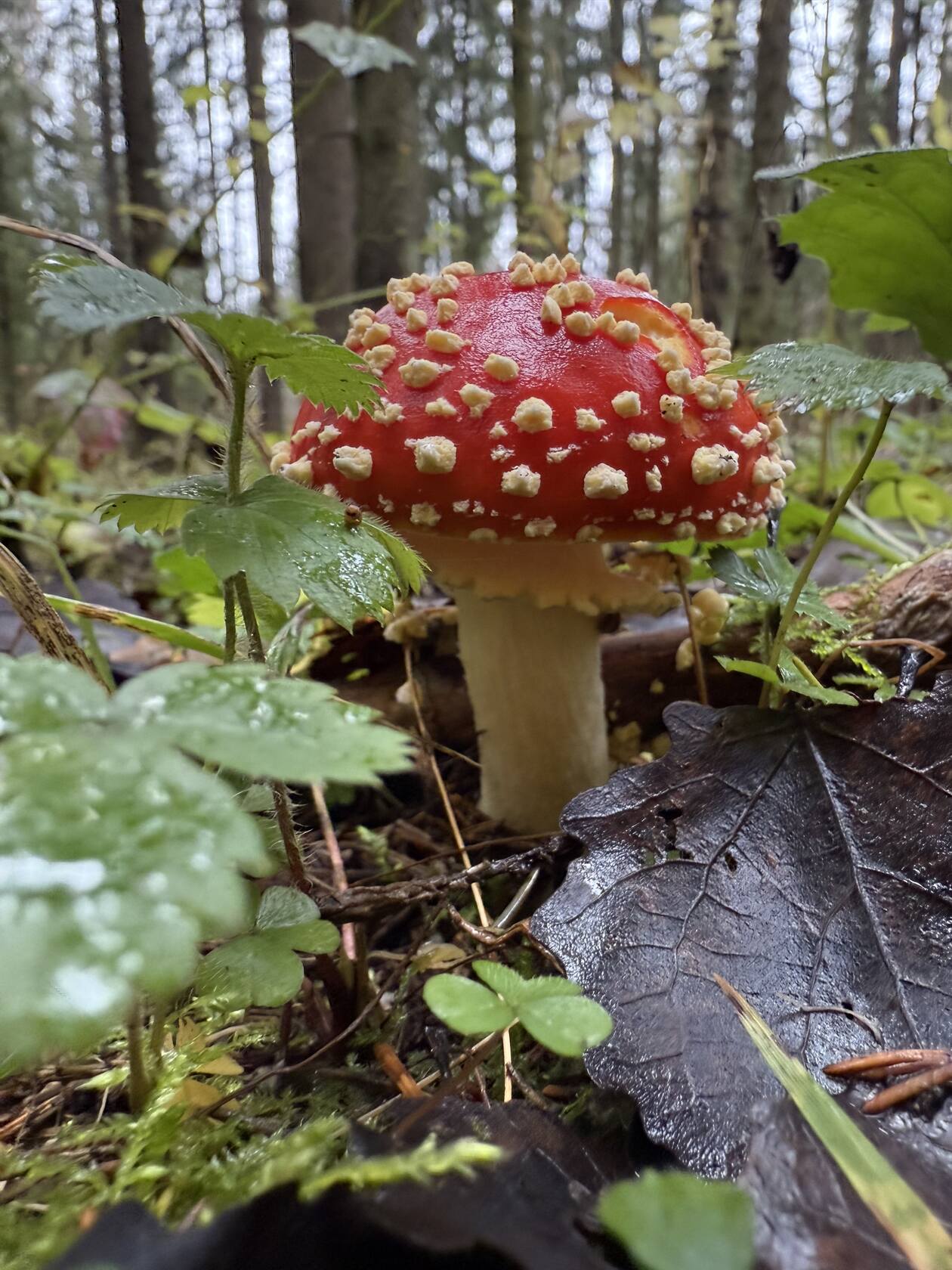 Есть и другие маслята. Местами краснеют свежие мухоморы. От инфракрасных грибов можно дойти до ультрафиолетовых.