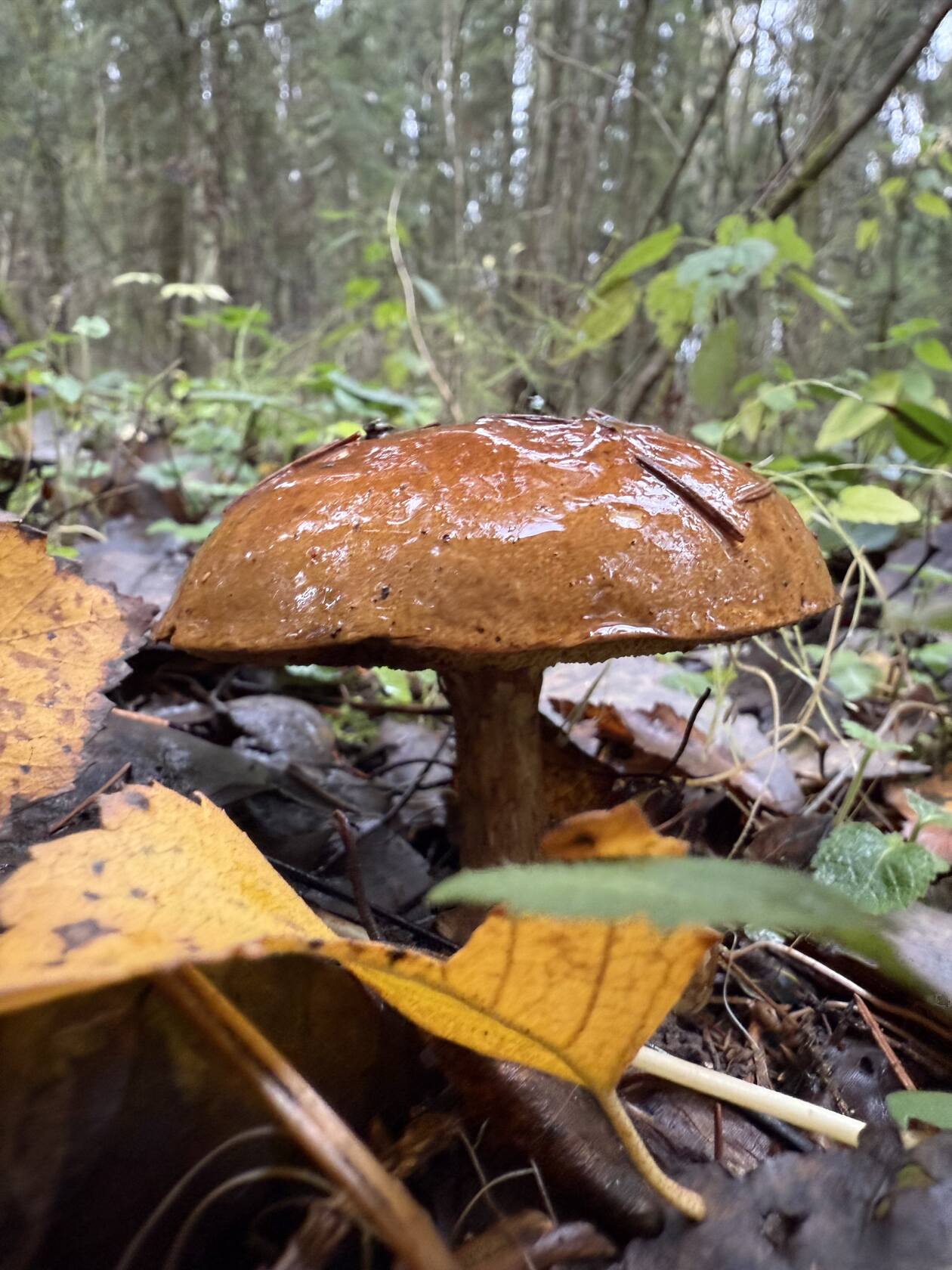 Лес усеян бывшими маслятами, но лезет и новое поколение поздних. Тоже пока не очень многочисленное.