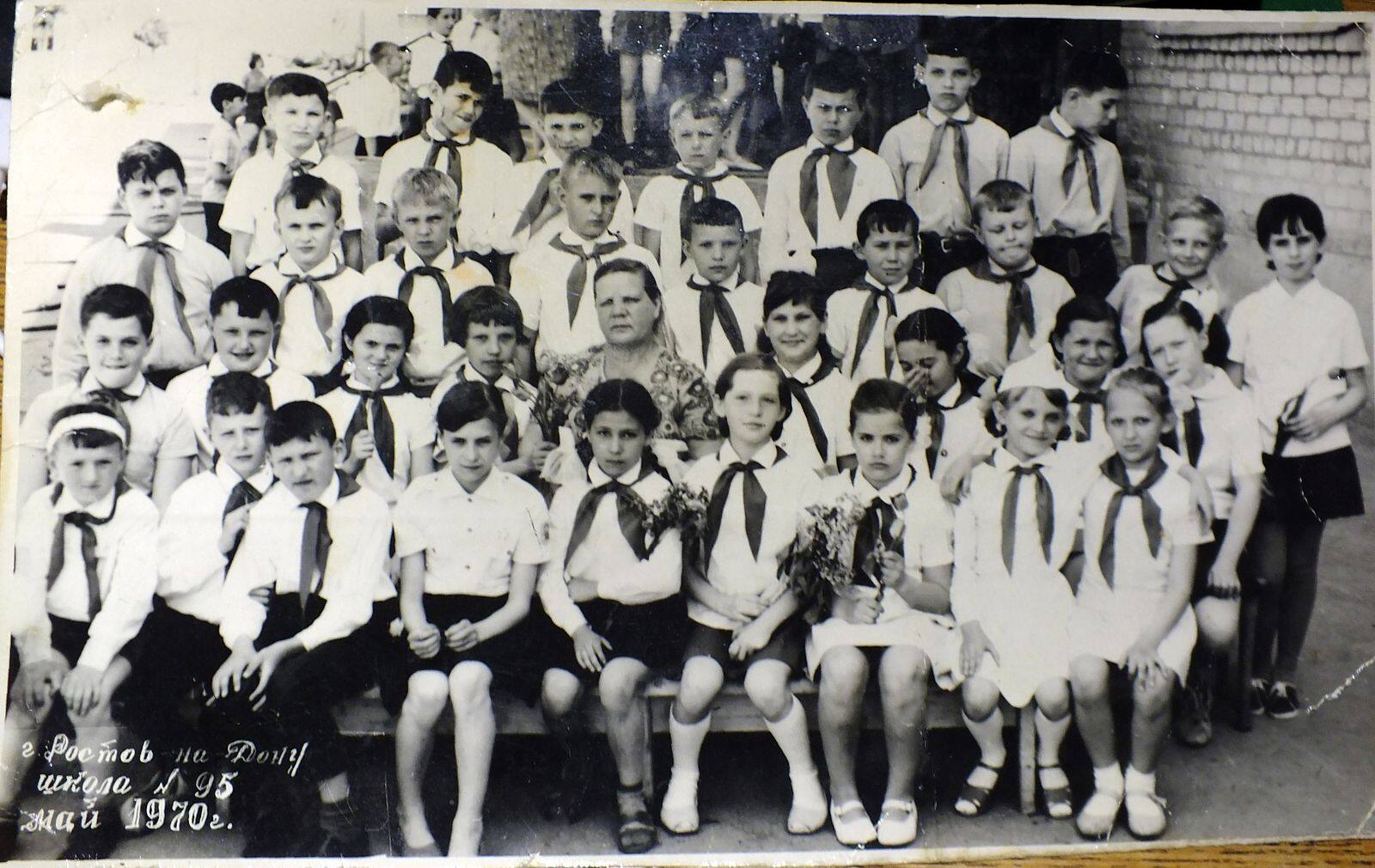 Это уже окончание третьего класса, нас приняли в пионеры, прощаемся с первой учительницей.