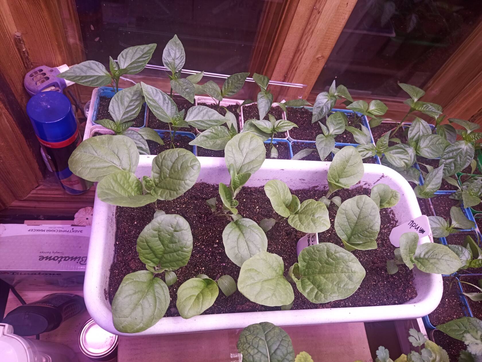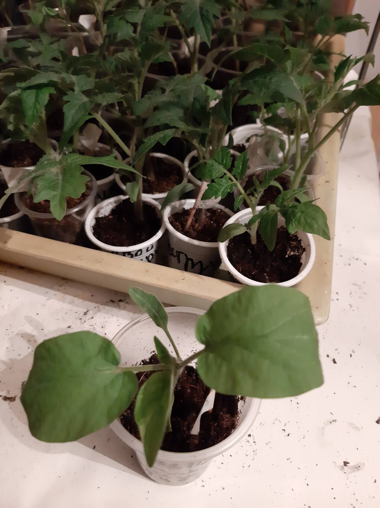 Вот по форме  листья на баклажан похожи, а по структуре листа не такие. И семядоли не баклажанные, длинные как у томатов. То же сначала на баклажаны подумала, а потом засомневалась. Буду наблюдать. Если баклажан, то ничего путного уже не выйдет, поздно посеяны для них.