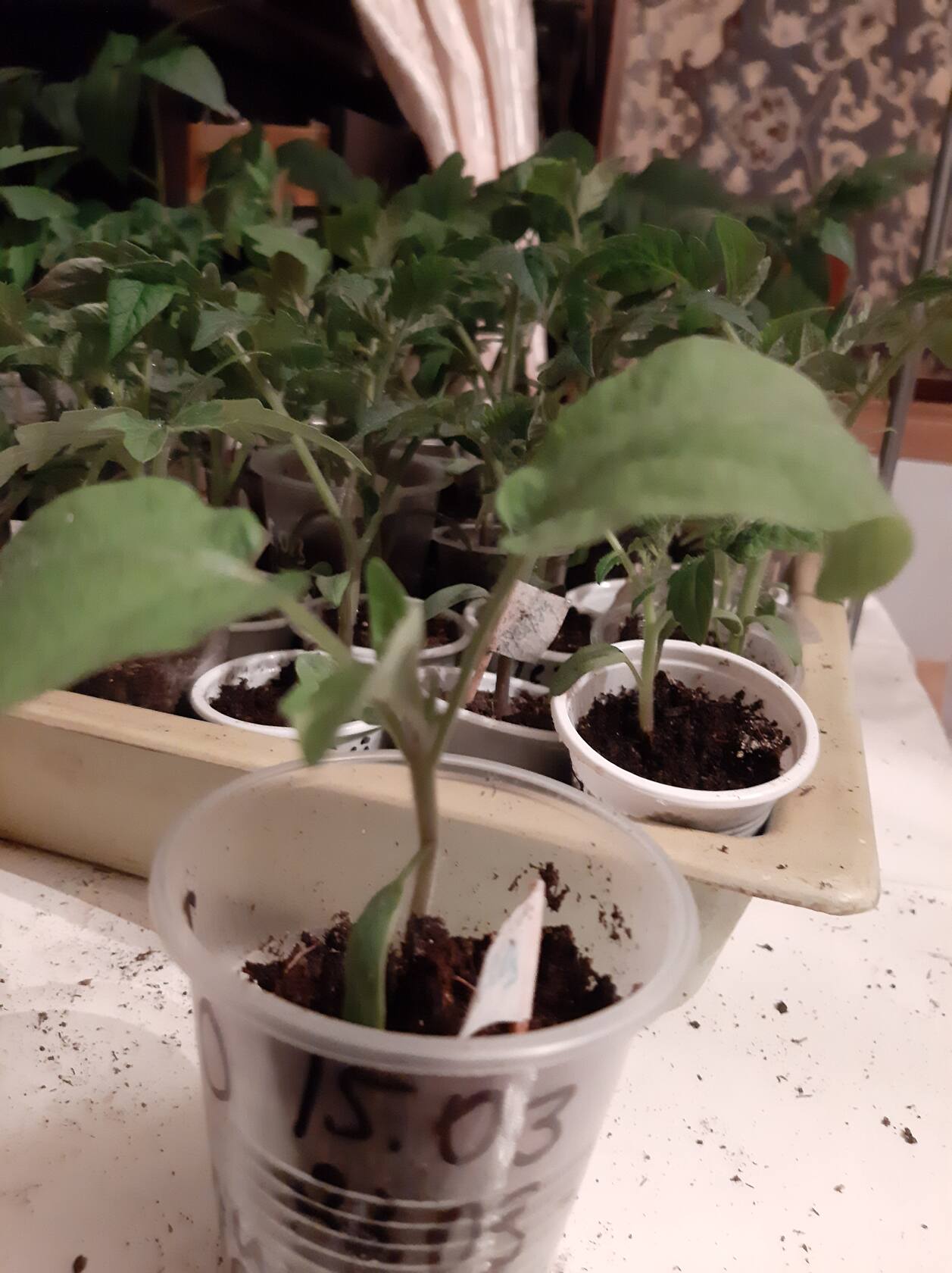 А  не разбираюсь я в листьях. Даже не обращала внимания, какой должен быть. Вот выпустят еще по паре , тогда и видно будет.Пляшу вокруг рассады со всех сил. Уже две перевалки сделала, тк из таблеток засунула в 50 мл. Сейчас они в 200 мл и за  неделю почти полностью освоили этот объем.  Через неделю часть перевалю в 500 мл... и дальше не знаю, что буду делать, тк место заканчивается, а на лоджию еще  томатам и перцам рано. Хотела отвести к дочери, а там на комнатных цветах трипс разгулялся. Наверно с букетами занесли.